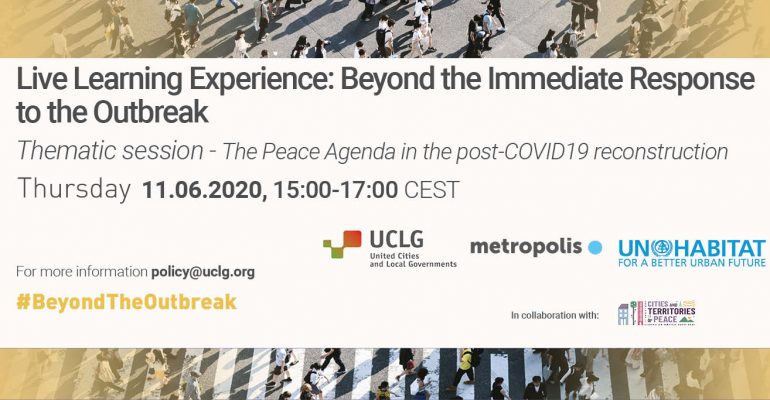 On the 11th of June a Live Learning Experience session took place, organized by UCLG, Metropolis, and UN Habitat in collaboration with the World Forum on Cities and Territories of Peace, on the Peace Agenda during and after Covid-19. Local and regional governments around the world have been at the forefront in this regard as well, prioritising service provision, seeking to develop governance that puts people at the centre, and of course developing a culture of peace so that the health crisis does not become a social crisis. During the session which addressed the agenda of local governments for peace, the UCLG Peace Prize Secretariat gave a peace presentation on efforts that take place. Representing the UCLG Peace Prize, Sanne van Amerongen noted the importance of local approaches in times of crisis, as they are important in promoting peaceful environments. She pointed out that this focus was the most important in granting the Second UCLG Peace Prize to the municipality of Arsal, within the framework of the UCLG Congress, for its work in pursuit of social cohesion after the Syrian war.
